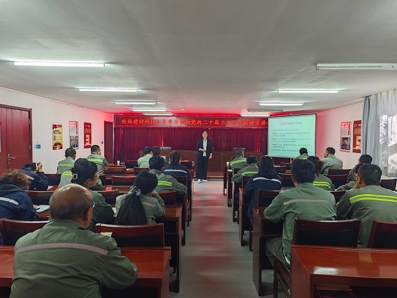 10月10日,陜西建材科技公司財務總監周燕芳到黃陵公司宣講黨的二十屆三中全會精神,并對該公司黨總支會、黨總支班子理論學習進行旁聽督導。